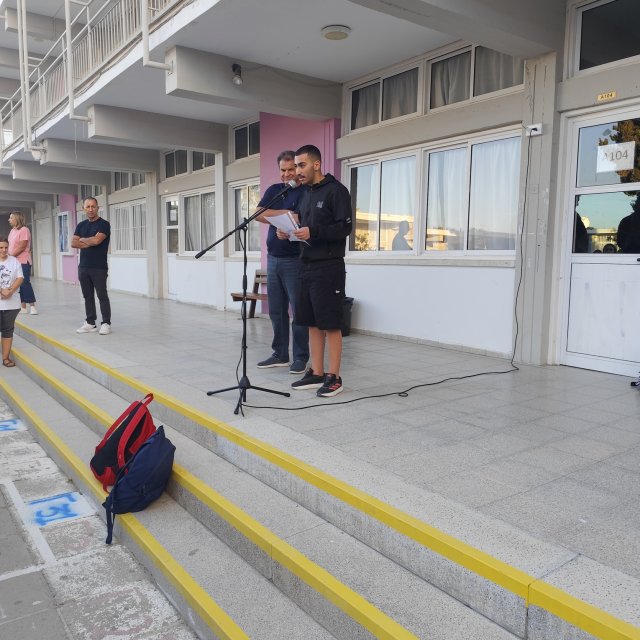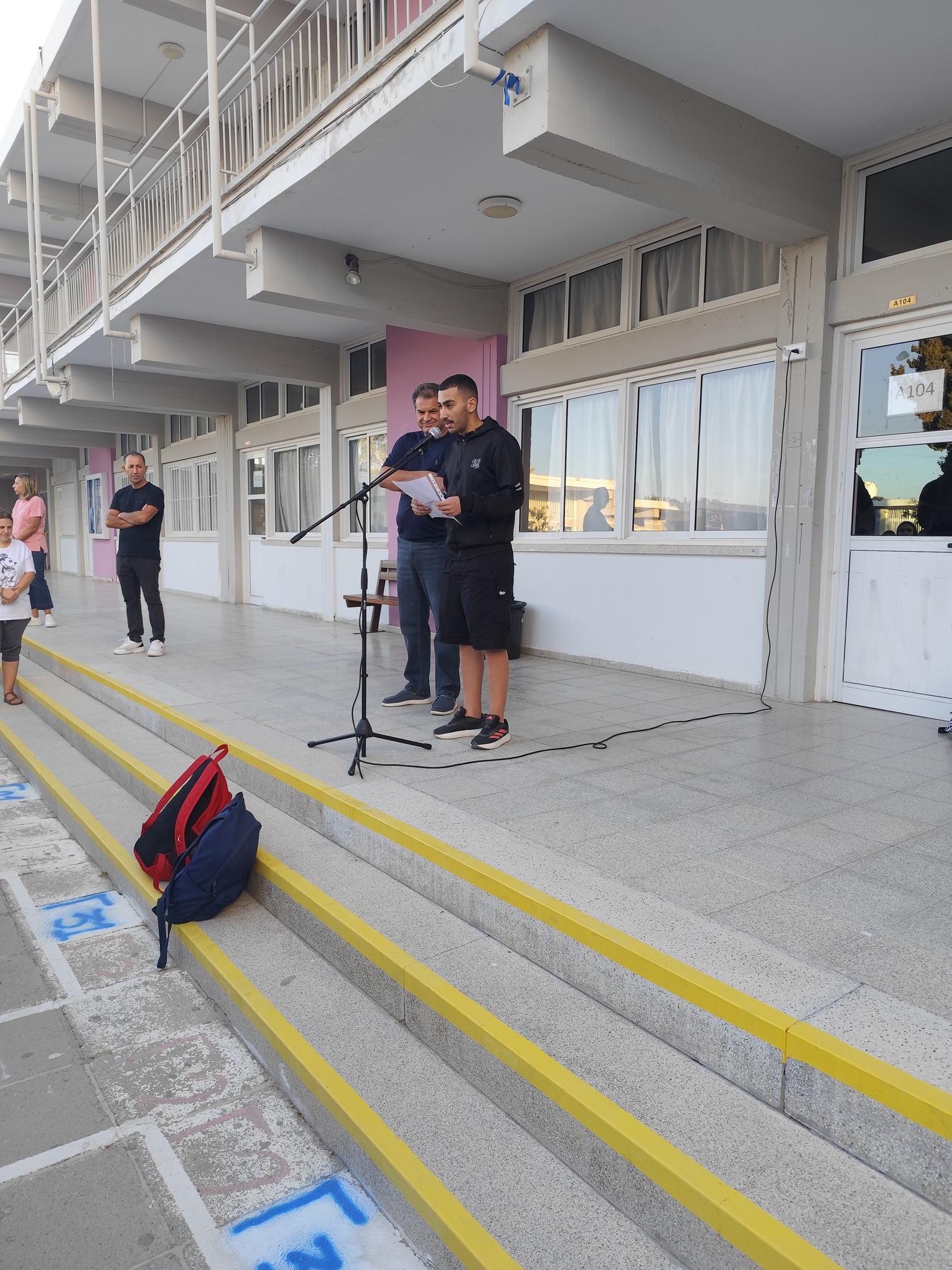 Σήμερα 7/10/2025 πραγματοποιήθηκε η παρουσίαση του Κεντρικού Μαθητικού Συμβουλίου του σχολείου μας. Ο πρόεδρος του ΚΜΣ, Λούκας Χαραλάμπους, εξέφρασε την πρόθεση του συμβουλίου για συνεργασία και ανοιχτή επικοινωνία με όλους τους μαθητές.
