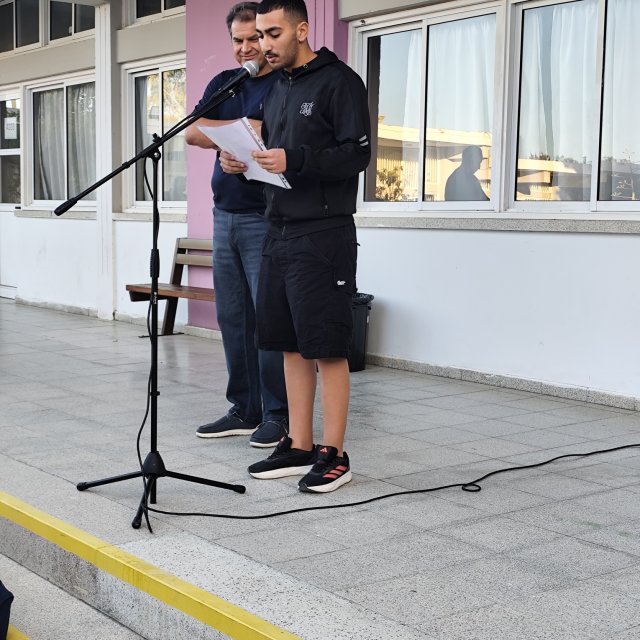 Σήμερα 7/10/2025 πραγματοποιήθηκε η παρουσίαση του Κεντρικού Μαθητικού Συμβουλίου του σχολείου μας. Ο πρόεδρος του ΚΜΣ, Λούκας Χαραλάμπους, εξέφρασε την πρόθεση του συμβουλίου για συνεργασία και ανοιχτή επικοινωνία με όλους τους μαθητές.
