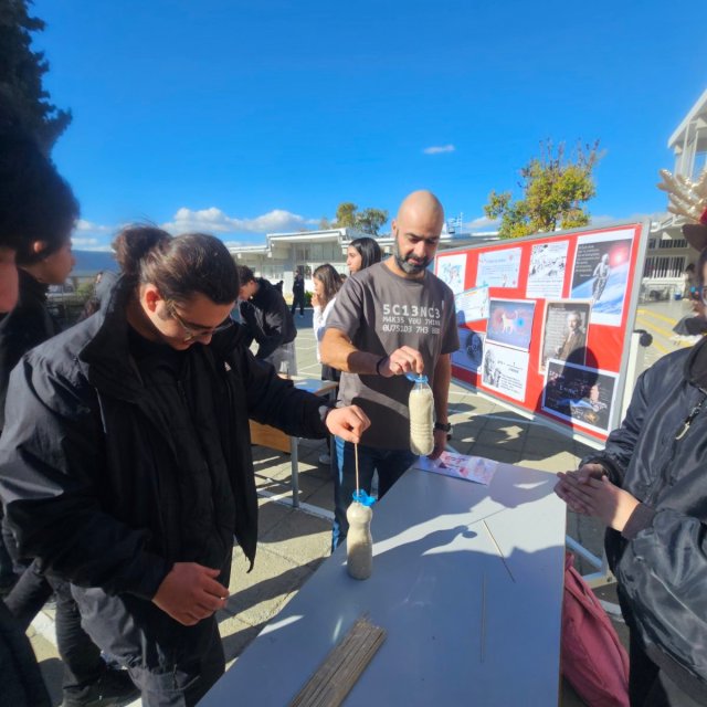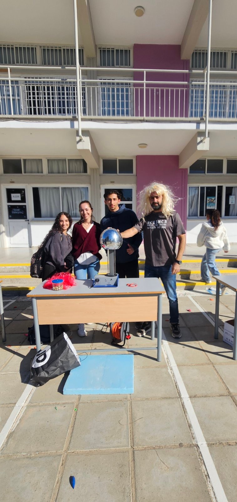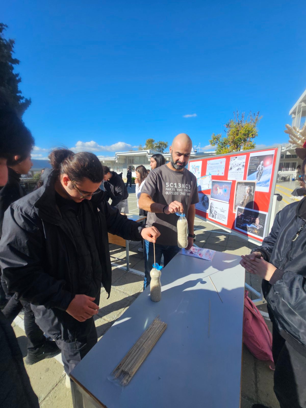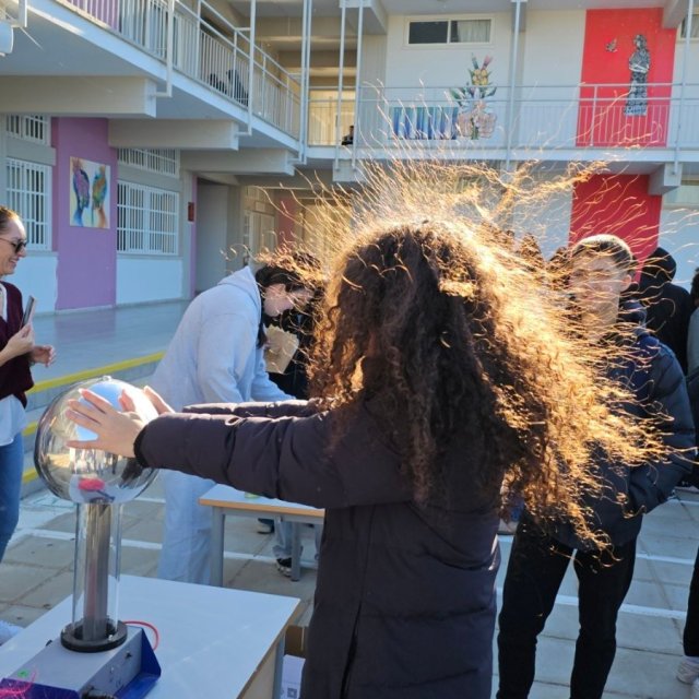Έτσι, με πρωτοβουλία του κλάδου Φυσικής, στον προαύλιο χώρο του σχολείο, οργανώθηκαν δράσεις με στόχο την επαφή με θέματα και εφαρμογές της Φυσικής στην καθημερινή μας ζωή.