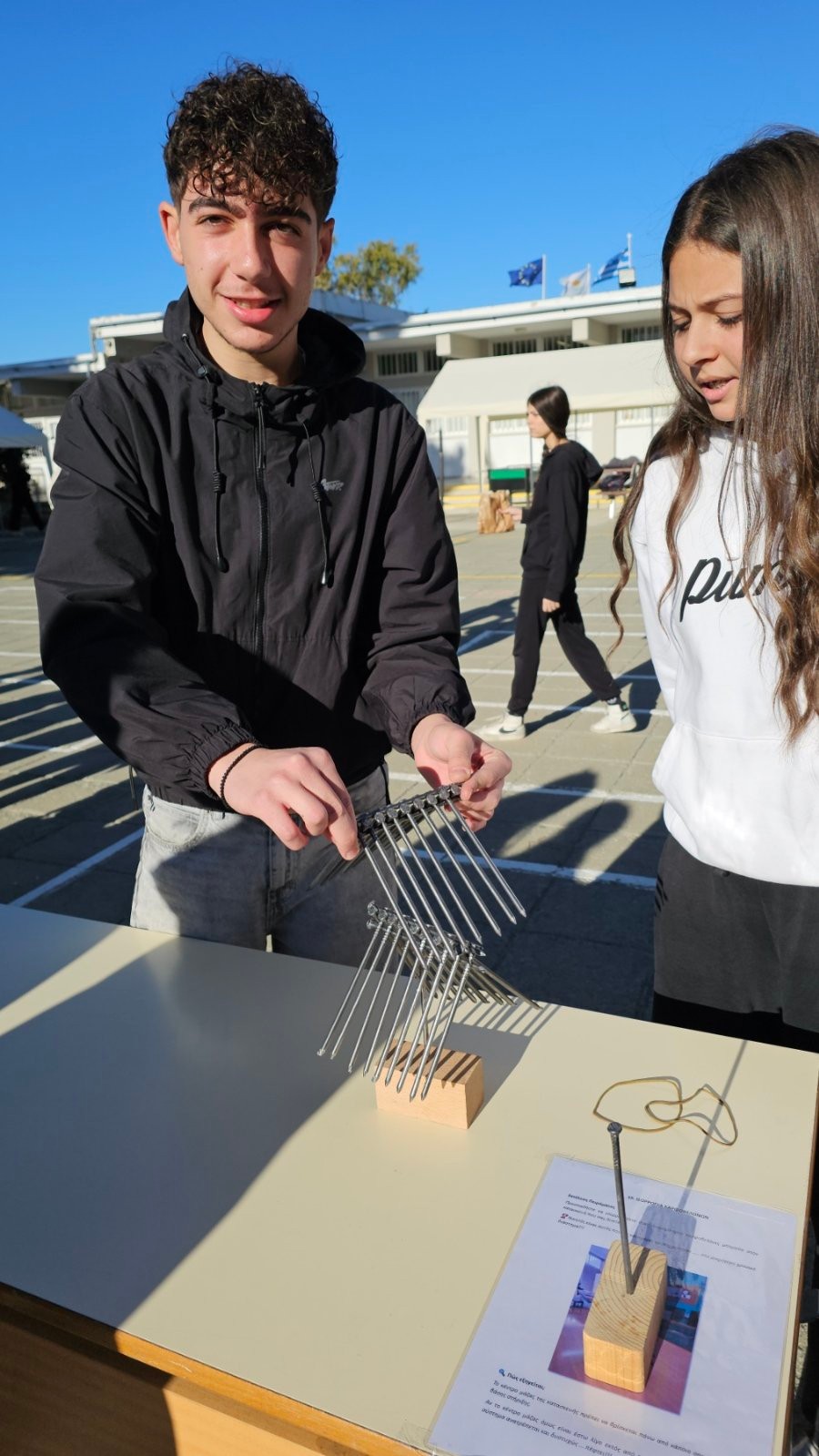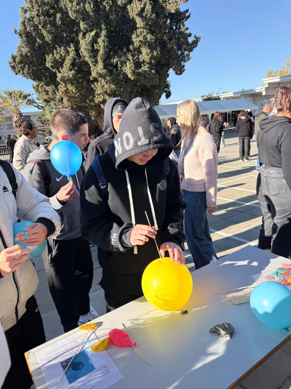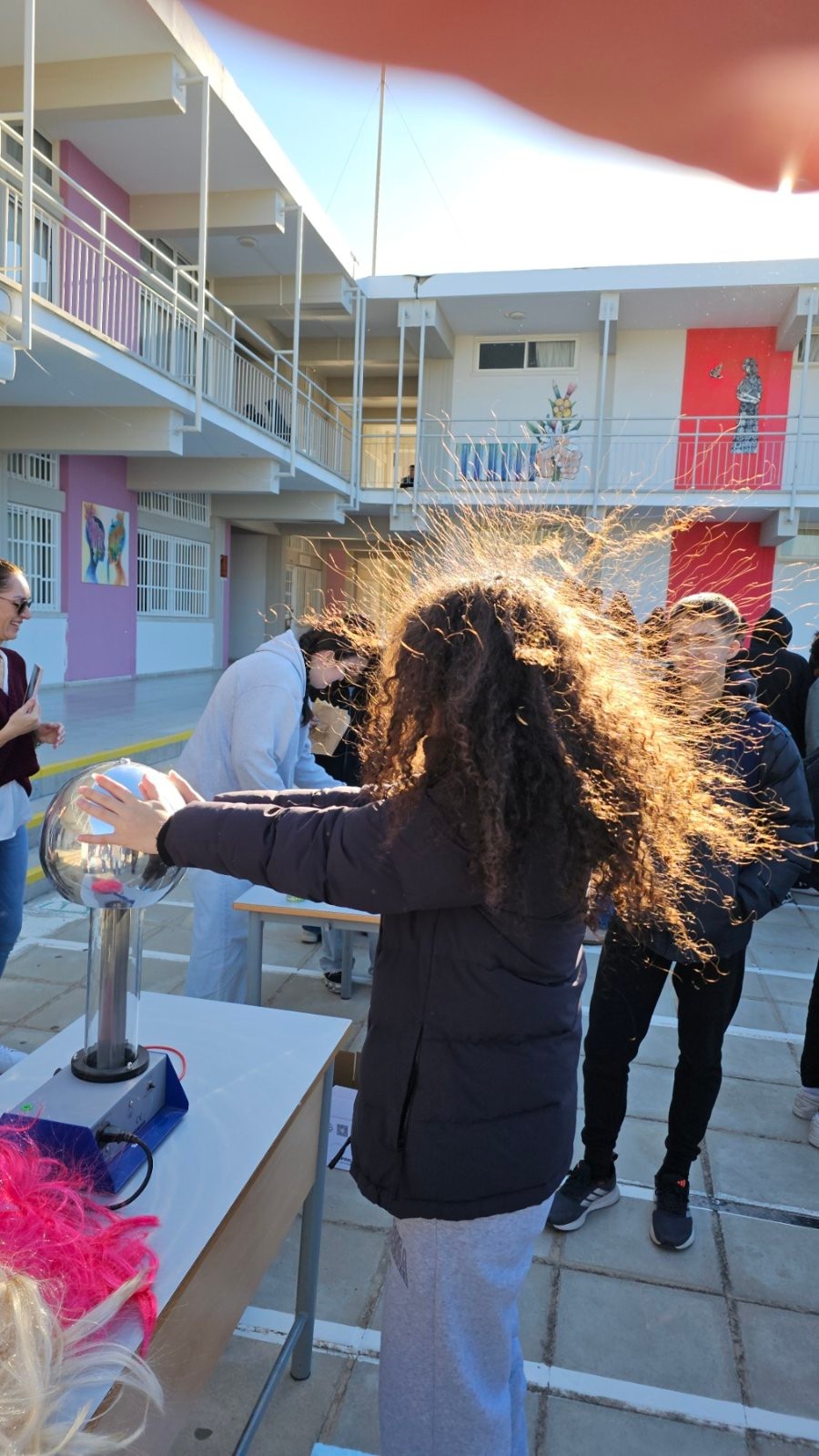 Έτσι, με πρωτοβουλία του κλάδου Φυσικής, στον προαύλιο χώρο του σχολείο, οργανώθηκαν δράσεις με στόχο την επαφή με θέματα και εφαρμογές της Φυσικής στην καθημερινή μας ζωή.