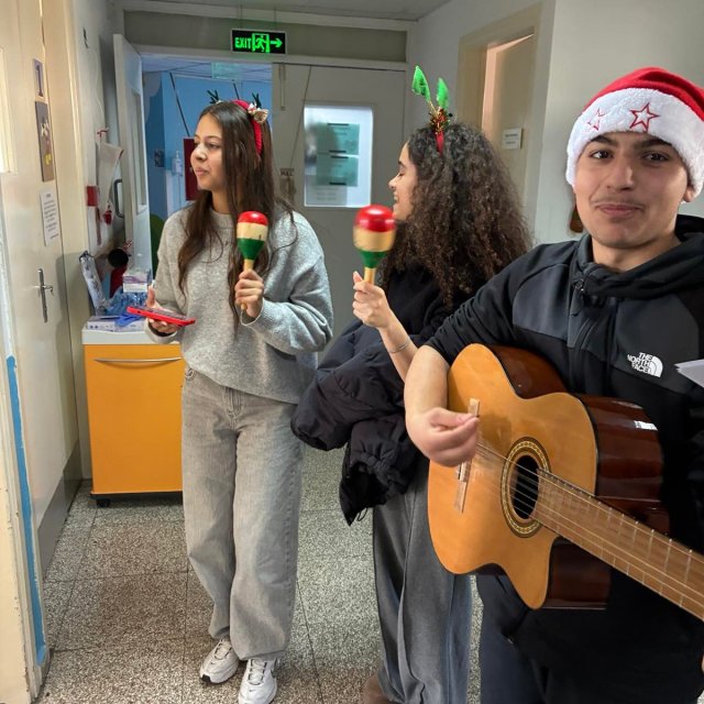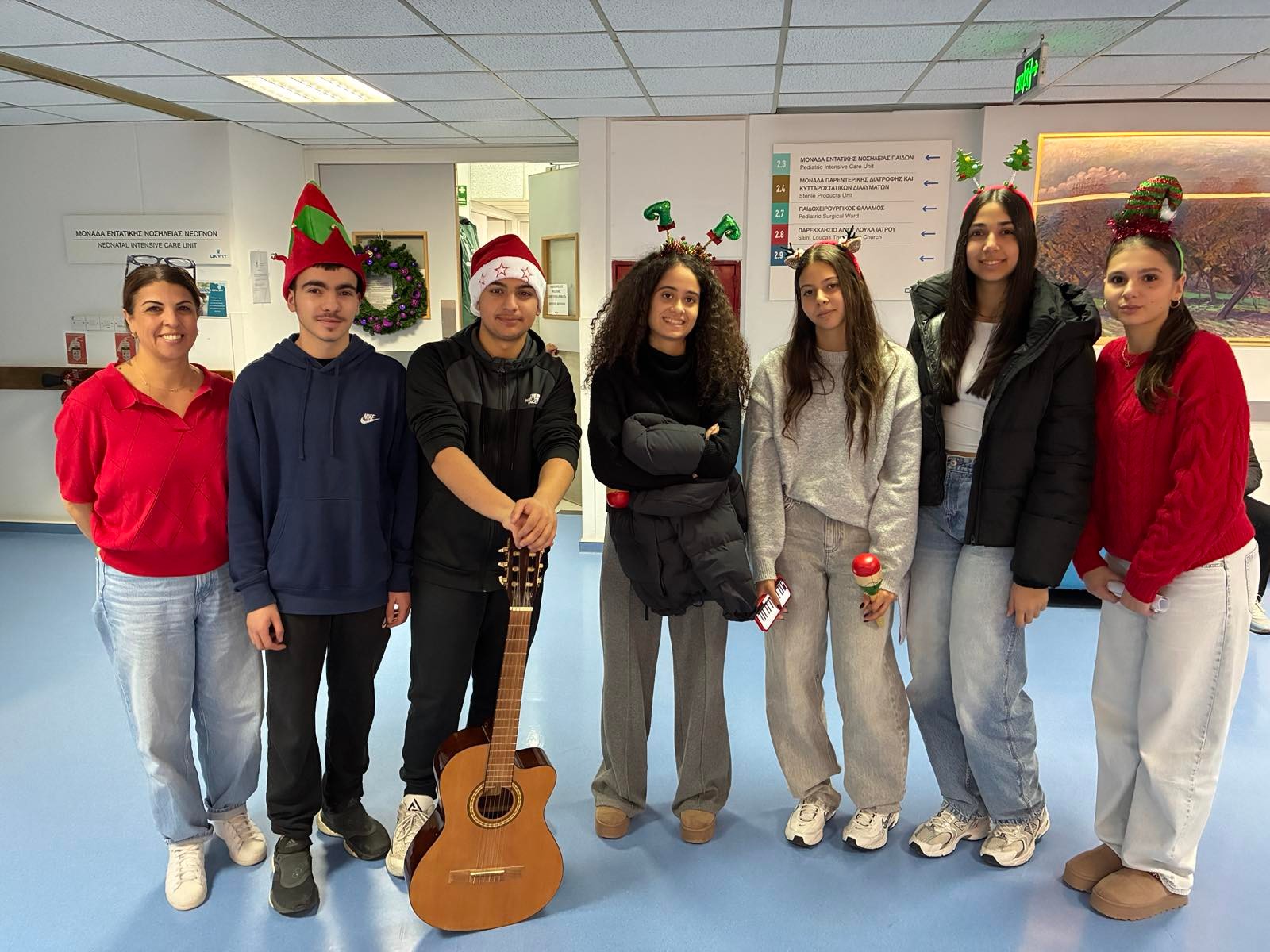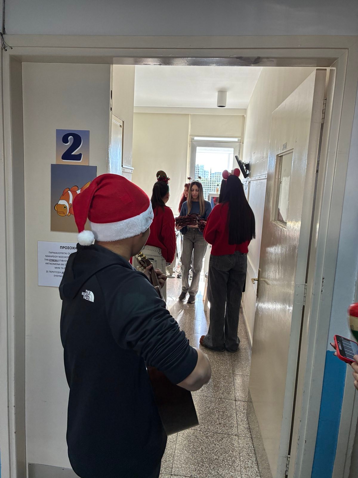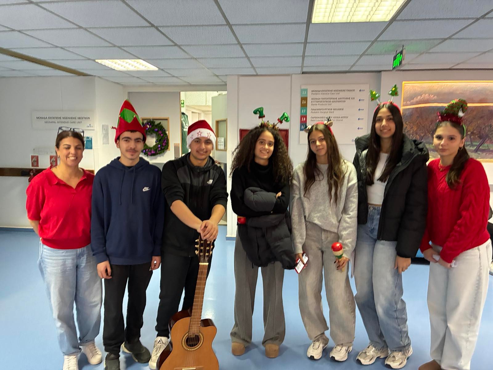 Κατά την διάρκεια της επίσκεψης, μαθητές/ριες της χορωδίας μας τραγούδησαν χριστουγεννιάτικα τραγούδια, στα παιδιά που είναι ασθενείς, καθώς επίσης και στις οικογένειες και το προσωπικό του νοσοκομείου.